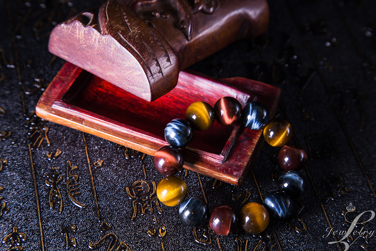 虎眼石的種類多種多樣,根據其所含微量元素不同分為紅、藍、黃虎眼石,紅色代表人緣,藍色健康,黃色招財